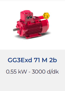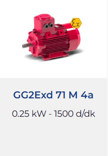 - 0,09kW- 75kW güç aralığına sahip 2-4-6 veya 8 kutup olarak elektriksel tasarımı yapılmış, doğrudan besleme ile çalıştırılabilecek, IP65 koruma sınıfına sahip 3 fazlı, sincap kafesli, asenkron elektrik motoru grubudur.