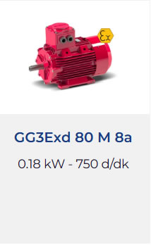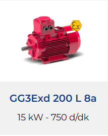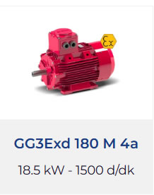 - Alev sızdırmaz d sınıfı yapıda tasarlanmış olan motorlarda, muhafaza bileşenleri dökme demirdir.