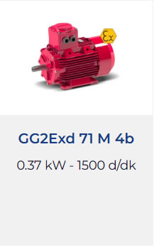 - Ex-proof Motorların koruma sınıfları gaz ortamı için II 2G Exd IIC T4 Gb, toz ortamı için ise II 2D Extb T135 Db olacak şekilde tasarlanmıştır.